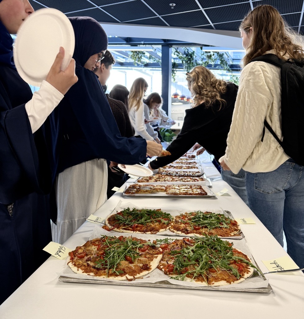 Nesten hele kullet dukket opp da Optikerbransjen bød på pizza til de nye førsteårsstudentene i optometri.